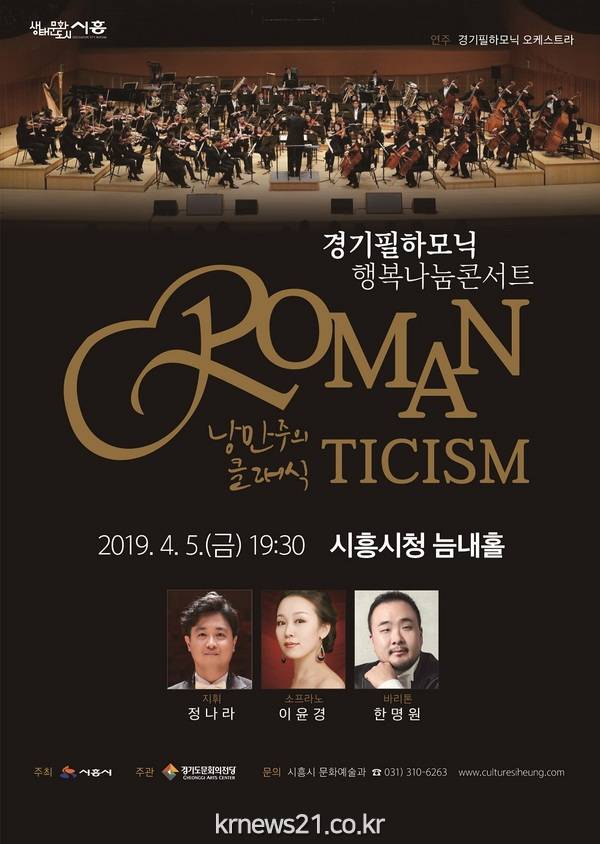 시흥시가 주최하고 경기도 문화의 전당이 주관하는 이번 공연은 정나라 지휘자의 지휘로 경기필하모닉오케스트라가 연주하며, 소프라노 이윤경과 바리톤 한명원이 함께한다.