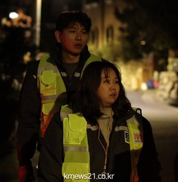 더욱이 ‘희쓴 부부’는 ‘착붙’한 듯 잘 어울리는 방범복을 착용하고, 번쩍거리는 경광봉을 들고 비장하게 골목을 누비는 모습으로 시선을 강탈했다. 게다가 지난 39회에 등장해 미친 존재감을 뽐냈던 부동산 사장님과 평소 자주 방문하는 백반집 사장님 등 절친한 주민들을 만나 살가운 근황 토크를 펼치면서 유쾌한 케미를 터트렸던 것. 또한 희쓴 부부는 귀가하는 시민들을 직접 바래다주는 ‘안심 귀가 에스코트’부터 동네의 청결을 위해 쓰레기를 줍고, 직접 준비해 온 방범용 호루라기를 시민들에게 나눠주는 등 ‘일당백 맹활약’으로 한밤중 동네 주민들의 웃음꽃을 피워냈다.