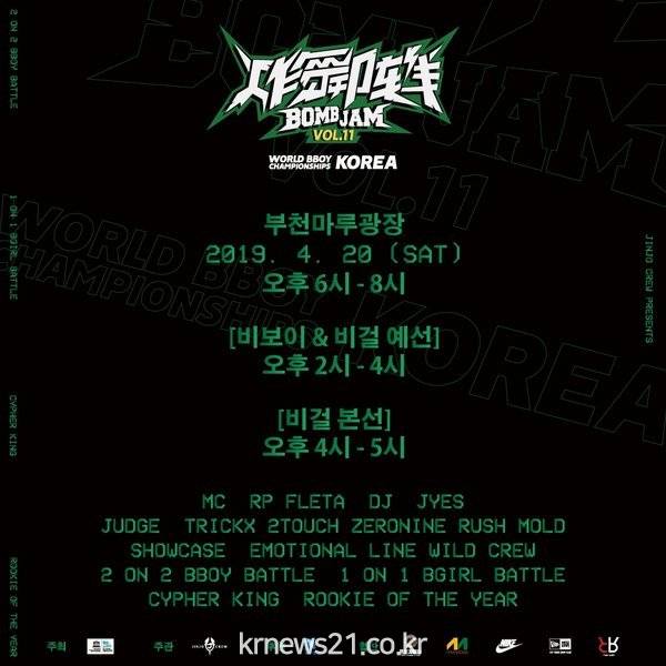 이번 대회부터는 여성댄서들의 참여를 확대해 비걸 1:1 배틀을 예선부터 진행해 더욱 불꽃 튀는 예선전이 치러질 것으로 기대된다. 또한 2018 부천세계비보이대회(BBIC) 올장르 퍼포먼스 대상을 수상한 이모셔널 라인(EMOTIONAL LINE)과 인기상을 차지한 와일드 크루(WILD CREW)의 축하공연으로 한층 뜨거운 무대를 선보일 예정이다.