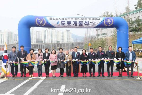 이와 관련 시는 지난 27일 초원마을 회전교차로 앞에서 백군기 용인시장을 비롯해 용인시의회 의원, 주민 등 100여명이 참석해 개통식을 가졌다.