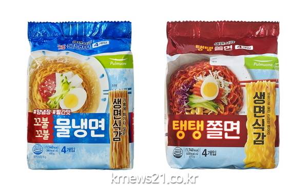 ▲ (사진=풀무원 생면식감 꼬불꼬불 물냉면(왼쪽), 생면식감 탱탱쫄면(오른쪽))시장조사기관 닐슨에 따르면 현재 국내 여름 라면시장은 정체된 전체 라면시장 내에서도 최근 3년간 평균 17.5%의 성장률을 보이며 약 1,400억 규모로 성장했다. 특히 비빔면 중심의 단조로운 메뉴와 경쟁 구도에서 다양한 신제품들이 나오며 새로운 시장을 형성하는 추세다.