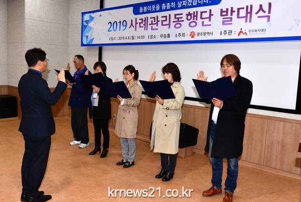 광주광역시는 공공복지 전달체계인 찾아가는 보건·복지서비스의 강화에 따라 동 중심 사례관리를 지원할 사례관리동행단 66명을 구성하고 8일 오후 시청 무등홀에서 발대식을 개최했다.