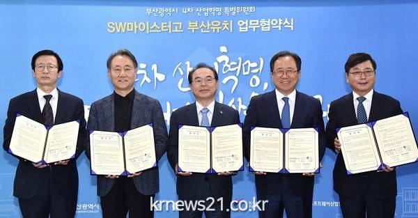 이번 협약 체결에는 부산시와 교육청 뿐 아니라 4차 산업혁명 특별위원회 위원의 소속 기관인 부산상공회의소, 한국소프트웨어산업협회, K-Software포럼이 함께 하고 산·학·연 각 기관은 회원기업과 함께 SW마이스터고의 교과과정 운영, 현장실습, 학생취업에 관한 사항(인턴사원, 약정채용 등) 등에 대한 적극적인 지원을 다짐했다.