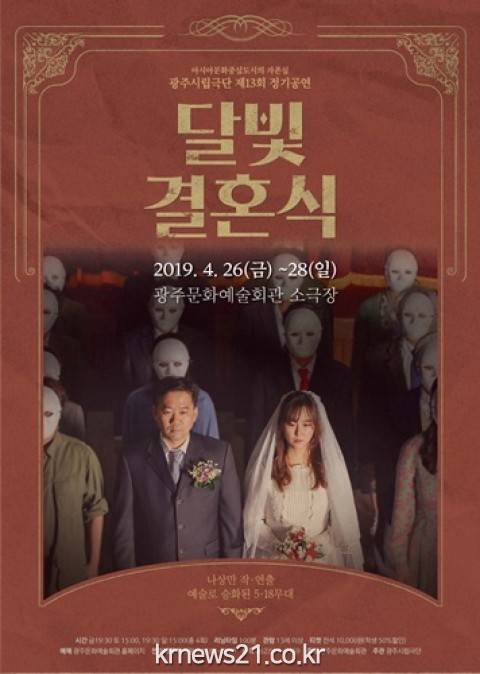 풍자와 해학으로 ‘광주 정신’과 ‘5·18 민주화운동’을 다룬 연극이 무대에 오른다. 광주시립극단은 4월 26일부터 28일까지 광주문화예술회관 소극장에서 연극 <달빛 결혼식>을 공연한다. 나상만 예술감독의 1987년 작 <우덜은 하난기라>를 새롭게 각색해 연출한 작품이다.