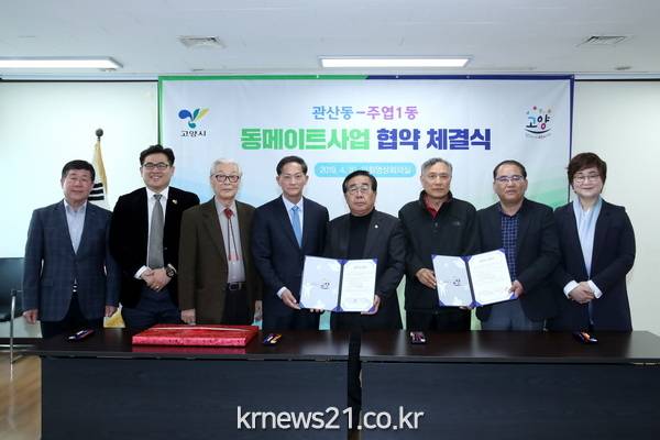 ▲ (사진=고양시청 제공)고양시는 지난 10일 고양시 관내 동 상호 간 인적·물적 교류를 활성화하기 위해 관산동-주엽1동 동메이트 협약식을 개최했다.