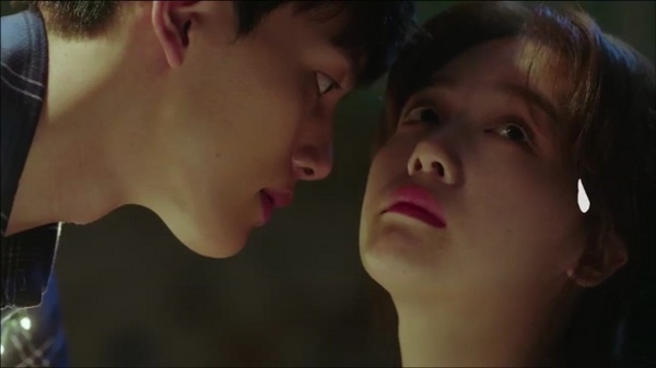 ▲ [사진제공 = ‘절대그이 티저’ 캡쳐]먼저 잠든 것처럼 눈을 감고 있는 제로나인(여진구)을 향해 특수분장사 엄다다(방민아)가 “뭐야, 무슨 더미(시체 모형)가 이렇게 리얼해?”라며 다가서 순을 뻗는 순간, 제로나인이 넘어지면서, 두 사람은 사고처럼 깜짝 첫 키스를 나누게 된다. 게다가 키스를 받고 눈을 번쩍 뜬 제로나인은 엄다다를 향해 “여자 친구”라고 부르더니, 끊임없이 따라다니며, 거침없는 사랑 표현을 시작한다.