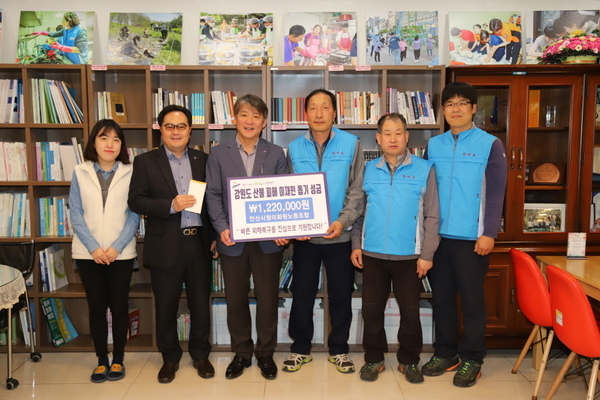 ▲ [사진=강원도 산불 피해 이재민 돕기 성금]안산시 환경미화원 공무직노조(위원장 김종암)는 지난 18일 안산시자원봉사센터를 방문해 강원도 고성군 일대 산불 피해 주민을 위해 써달라며 성금 122만원을 전달했다.