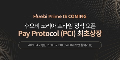 페이프로토콜이 발행한 코인인 페이코인(PCI) 거래는 한국 시간 기준 22일 20시부터 21시 10분까지 총 1시간 10분 동안 진행된다. 후오비 코리아 프라임은 후오비 코리아 웹사이트로 접속한 뒤 HT 마켓에서만 참여 가능하며, 총 3라운드로 진행된다. 1~2라운드는 10분간 거래 후 10분간 미체결 주문 취소 과정까지 총 20분씩 진행되며, 3라운드는 10분간 거래 후 20분간 주문 취소 과정까지 총 30분간 진행된다. 이때, 각 라운드별 정해진 수량 내에 선착순으로 매수된다. 인당 매수 횟수 제한은 없으며, 1회 매수 한도로 모든 라운드 복수 매수가 가능하다.