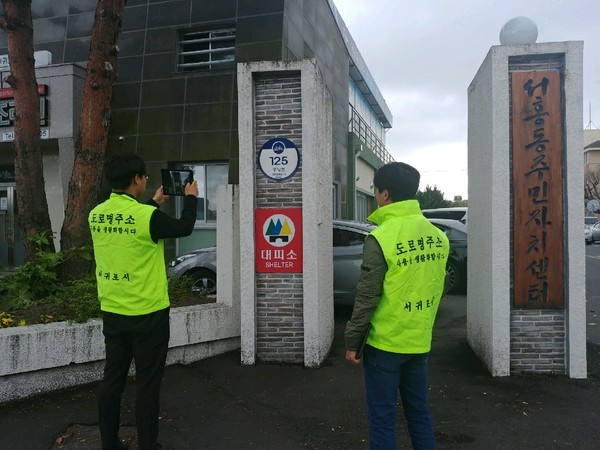 ▲ [사진=도로명주소일제조사]서귀포시에서는 시민들의 도로명주소 사용에 불편이 없도록 도로명주소 안내시설물 일제조사를 10월까지 실시하고 있다.