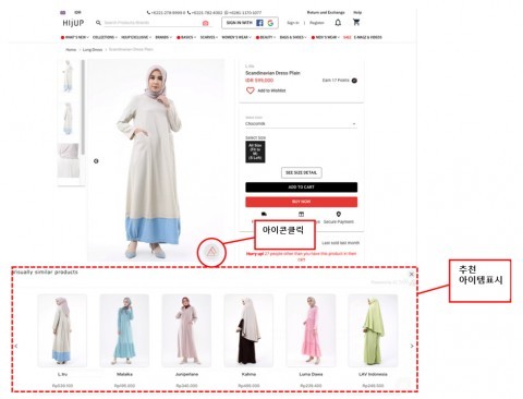 포핀 액션은 독자적인 화상인식 기술을 활용하여 전자상거래 사이트 내의 상품 사진과 유사한 상품을 동일한 사이트 내에서 찾아내어 표시하는 화상 추천 서비스다.