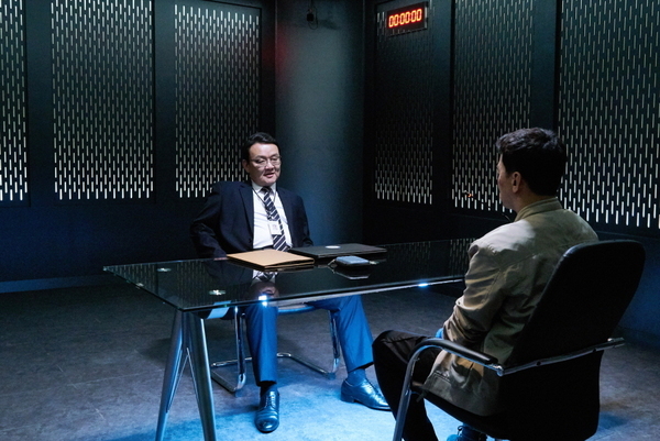 ▲ [사진제공 = SBS ‘빅이슈’]이와 관련 주진모가 어두운 조명이 깔린 조사실에 앉아 차순배와 날카로운 독대를 펼치는 모습이 포착됐다. 극 중 상처투성이가 된 채 수갑까지 찬 한석주가 굳은 얼굴로 차우진을 죽일 듯 노려보고 있는 장면. 반면 차우진은 비웃음을 드리운 채 대화를 유도하는 모습으로 시선을 자극하고 있다.