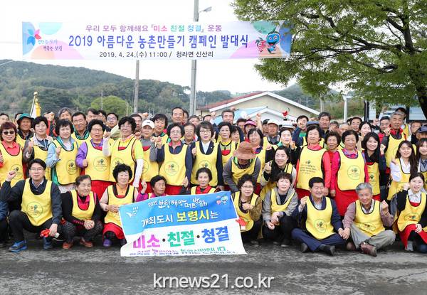 시는 이번 발대식 이후 읍면 및 마을단위 주민협의체가 중심이 되어 지역농협, 이장협의회 등 다양한 기관 및 단체가 참여해 농촌클린 및 마을가꾸기 운동을 전개하고 꽃·묘목 식재, 화단조성, 하천 및 담장 정비 등도 병행하여 농촌을 보다 아름답게 가꾸어나갈 계획이다.