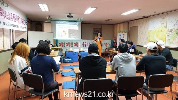 2019년 4월 27일 토요일 사)세계건강생활진흥연맹(조안순 대표)과 한국SIDS예방협회가 주관/주최하는 안전교육지도사 및 응급처치강사 대상 응급처치(심폐소생술)및 자동심장충격기 사용법 교육 역량강화 교육을 실시하였다.