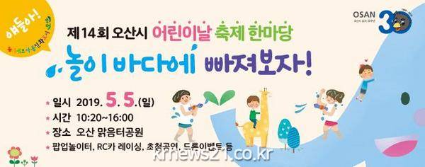 오산시(시장 곽상욱)는 5월 5일 맑음터 공원에서 제14회 어린이날 축제 한마당을 개최한다고 밝혔다.