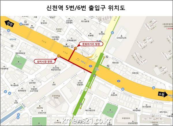 시흥시 신천역 삼미시장(5번 출입구)과 문화의 거리(6번 출입구) 방면 출입구가 오는 5월 10일 오후 6시부터 개통된다.