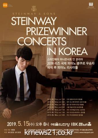 에릭 루는 영국에서 열린 2018 리즈 국제 피아노 콩쿠르에서 우승을 거머쥐었으며, 15일 서울 예술의전당 IBK챔버홀에서 WCN 주최, 스타인웨이&손(STEINWAY&SONS)과 리즈 국제 피아노 콩쿠르(The Leeds International Piano Competition), 코스모스악기의 후원으로 공연을 개최한다.