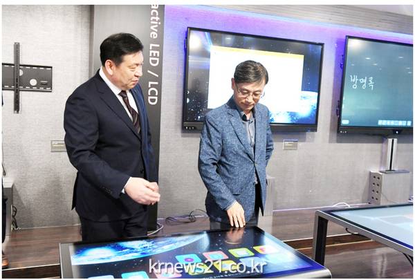 현장행정에서 김포 관내 대표적인 강소기업인 (주)아하정보통신(대표 구기도)를 찾은 정하영 시장은 "세계 일류상품에 선정된 전자칠판을 만드는 업체가 김포에 있어 자랑스럽다"며 "관내 학교에 접목해 학생들이 공부하는 데 유용하게 쓰였으면 좋겠다"고 말했다.