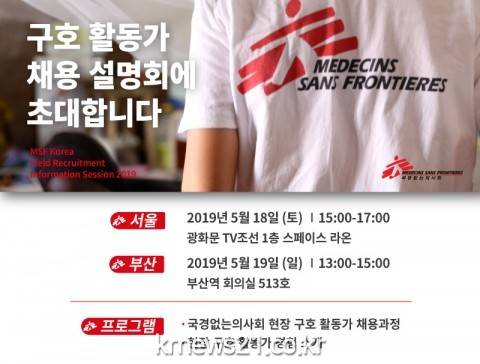 ▲ [사진=홍보지]국제 인도주의 의료 구호 단체 국경없는의사회는 5월 18일(토)과 19일(일) 양일간 서울과 부산에서 현장 구호활동가 채용 설명회를 개최한다.