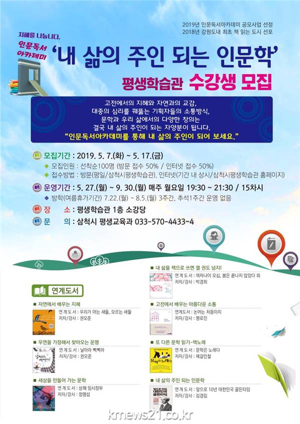 ▲ [사진=홍보포스터]삼척시 평생학습관은 인문독서아카데미 ‘내 삶의 주인 되는 인문학’ 수강생을 5월 17일(금)까지 모집한다.