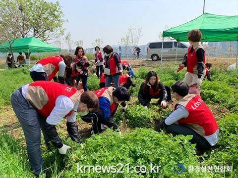 이런 상황을 개선하고 한강공원의 생태계를 안정시키고자 환실련에서는 4월 30일 롯데백화점 샤롯데봉사단 등, 기업, 단체, 시민봉사자 120여명이 함께 교란식물 제거활동을 진행하였다.