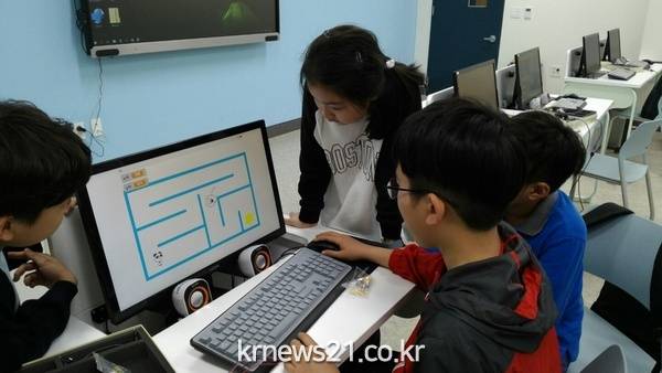 ▲ [사진=마포중앙도서관의 특기적성프로그램 중 블록 코딩으로 프로그램 언어를 배우고 있는 어린이들] 마포구(구청장 유동균)는 마포중앙도서관 특기적성프로그램의 여름학기 정규강좌 수강생을 오는 25일까지 모집한다고 밝혔다.