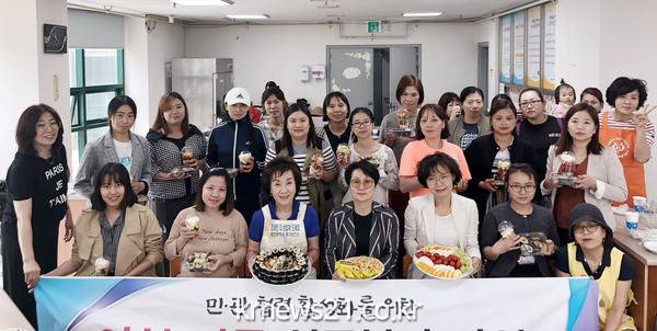 ▲ [사진=요리쿡조리쿡 단체사진]울산 중구지역사회보장협의체 여성가족분과(위원장 명미자)는 9일 오전 10시 중구보건소 조리실에서 지역 내 결혼이주여성 20명을 대상으로 '함께하는 요리쿡!조리쿡!'을 진행했다.