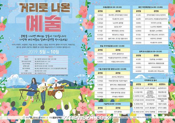시 관계자는 “아마추어 예술가는 꿈을 실현하고, 시민들은 일상 속 여유를 만끽할 수 있을 것”이라며 “용인 곳곳에서 펼쳐질 거리 예술에 온 가족이 함께 참여해 즐거운 시간을 갖기 바란다”고 말했다.