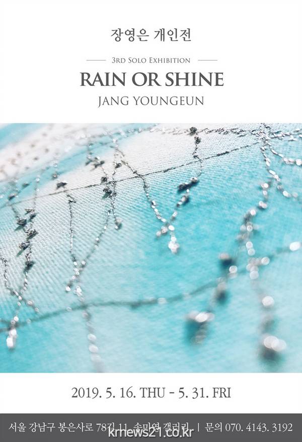 젊은 작가의 현대적 한국화 재해석이 놀랍다. 광목천에 발묵의 효과를 주고 반짝이는 실로 포인트를 부각하여 전달력을 극대화하려는 실험 정신이 돋보이는 작품으로 작업을 진행 중인 장영은 작가의 개인전이 서울 삼성동 소재의 송미영 갤러리에서 "RAIN OR SHINE" 타이틀로 오는 2019년 5월 17일(금) ~ 5월 31일(금)까지 열린다. 송미영 관장은 신진작가 발굴 프로그램을 운영하며 개성 넘치고 실력 있는 작가의 전시를 지원하고 있다. 송미영 갤러리는 한국미술에 새로운 활력을 불어 넣을 젊은 작가를 돕는 사업은 미술시장의 다양성과 확장성으로 연결될 것이라는 믿음으로 적극적인 신진작가 발굴 프로젝트를 진행하고 있다.