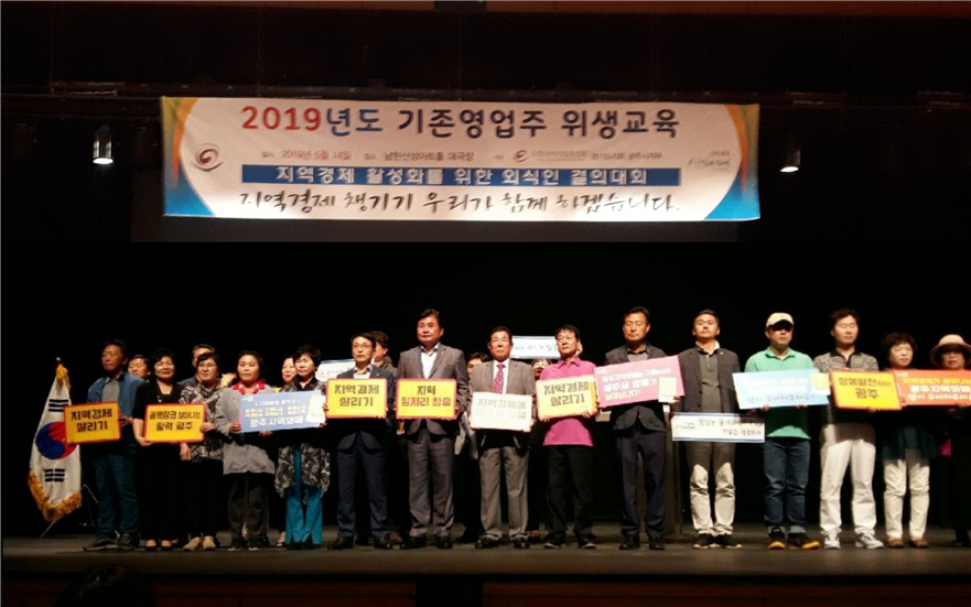 한편, 이날 위생교육에 앞서 한국외식업지부 광주시지부는 전통시장 및 동네가게, 지역식당을 이용해 우리 모두가 상생하는 광주시를 만들자는 ‘지역경제 활성화를 위한 외식인 결의대회’를 실시했다.