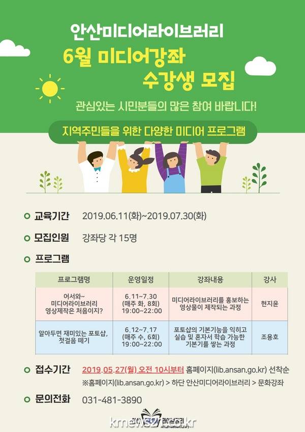 안산시(시장 윤화섭) 미디어 라이브러리는 6월 미디어 교육 프로그램을 개설하고 수강생을 모집한다고 21일 밝혔다.