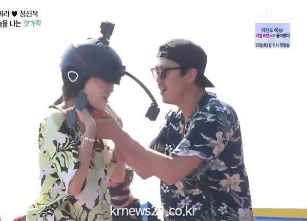 양미라-정신욱 부부는 이호-양은지 부부 및 세 조카와 휴양지 파타야로 놀러갔다. 바닷가로 향하는 쏭태우 안에서 양미라-양은지는 셀카를 찍으며 들뜬 모습을 드러냈고, 아내와 사뭇 다른 표정을 지으며 여행의 온도차를 느끼게 했던 정신욱 역시 시원한 바닷가를 보자 이내 환한 표정을 지어내며 물놀이에 뛰어들었다. 일곱 가족은 스피드 보트를 타고 꼬란 섬으로 이동, 하늘을 나는 패러세일링 체험으로 물놀이를 시작했다. 더욱이 양미라-정신욱 부부는 조카들에 이어 자신들의 차례가 다가오자 양미라는 환호한 반면, 정신욱은 얼굴이 하얗게 질린 채 대기실 기둥을 붙잡고 하늘을 나는 조카들을 지켜보는 극과 극 모습을 보여 웃음을 자아냈다. 그러나 막상 패러세일링 조끼를 입고 하늘로 둥실 떠오른 양미라는 초반 스태프들의 “예쁘다” 칭찬에 한껏 상기됐던 것과 달리, 말까지 더듬고 무서움을 참지 못해 “돌려주세요, 진짜 토할 것 같아”라며 힘들어했다. 힘 빠진 양미라가 바람에 흔들대는 모습을 본 정신욱은 ‘젓가락’이라 놀렸지만, 기운 빠진 양미라의 안전장치를 직접 풀어주며 힘들었을 아내를 다독였다.