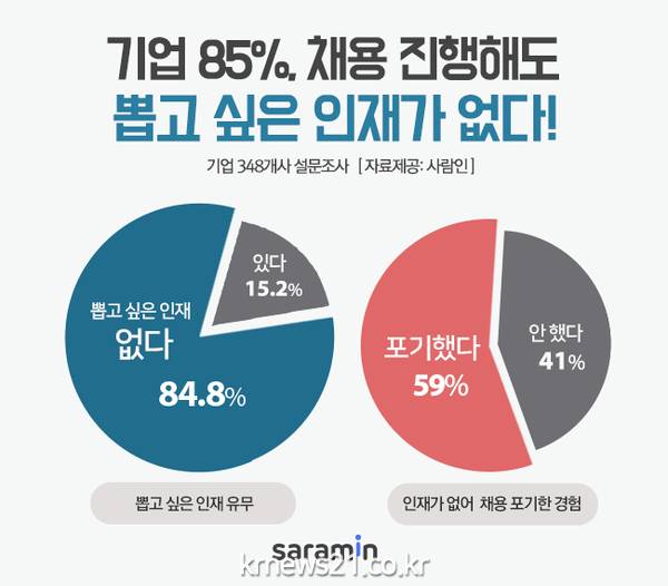 또, 이들 중 59%는 뽑을만한 인재가 없어 ‘채용을 포기했다’고 답했다.
