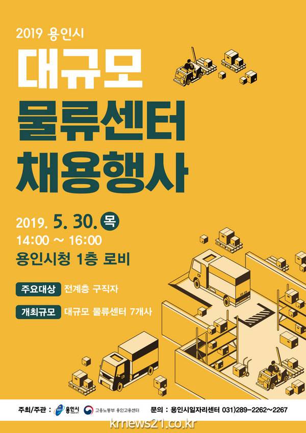 용인시는 30일 시청 로비에서 관내 대규모 물류센터 7개 업체가 참여하는 채용행사를 연다.