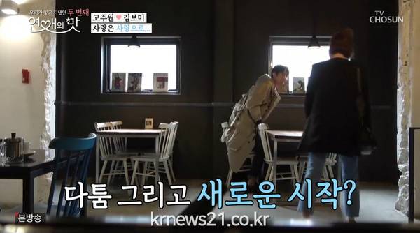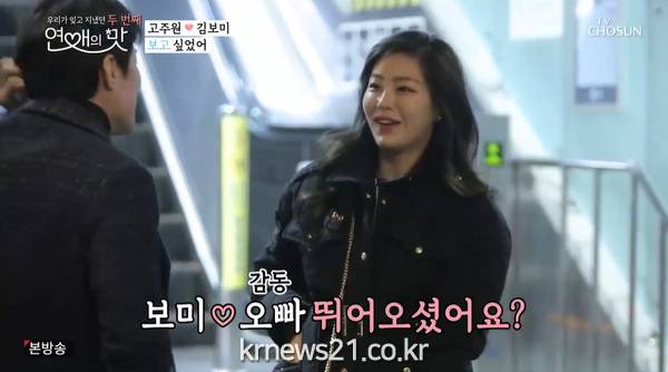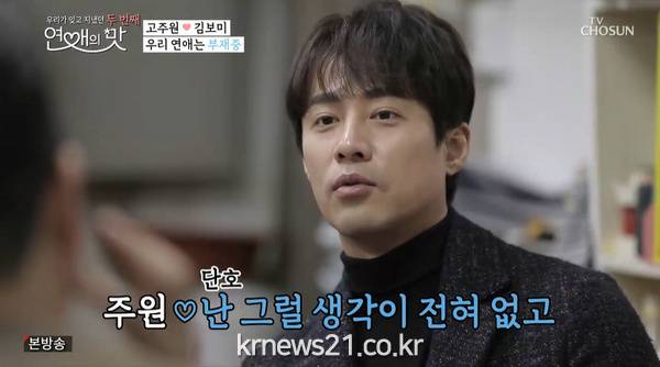 ▲ [사진제공 = TV CHOSUN ‘연애의 맛’ 캡처]다른 출연자들보다 이른 봄을 맛본 고주원은 김보미에게 먼저 문자를 보내고, 답장을 기다렸다. 두 사람은 시즌1 종료 이후 아무래도 먼 거리로 인해 연락만 주고받고 지냈던 터. 고주원의 기다림과 달리 병아리 신입사원 김보미는 눈코 뜰 새 없이 바쁜 업무로 여유가 없었고, 고주원은 답답한 마음에 유부남 친구들과 막걸리 잔을 기울였다. 유부남 친구들은 김보미와 연락이 자주 되지 않는 고주원을 계속 놀렸고, 한술 더 떠 “김보미가 마음에 들지 않을 수도 있지 않냐”며 염장을 질렀다. 더욱이 고주원이 술자리 후 홀로 노래방에서 고독을 즐기다 김보미의 전화를 받지 못했던 것. 김보미가 깜짝 서울행을 감행한 것을 알게 된 고주원은 황급히 택시를 잡아타고 김보미를 만나러 옥수역으로 달려갔다. 고주원은 기쁨과 당황스러움이 교차하는 가운데 식당으로 들어가 오랜만에 재회의 기쁨을 만끽했다. 그리고 고주원은 김보미에게 “내가 갈게요, 마음이 편할 거 같아”라고 전했고, “두 번 다신 하지 마요”라는 고주원의 말을 끝으로 한 달이라는 시간을 흘렀다. 심지어 마지막에는 고주원이 김보미가 아닌 다른 여성과 만나는 것으로 추측되는 영상이 흐르면서, 스튜디오를 발칵 뒤집었다.