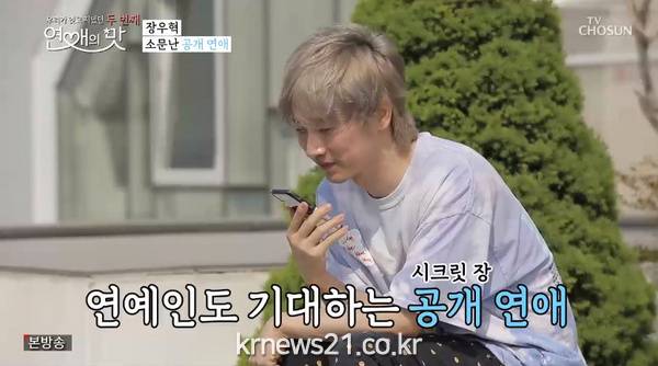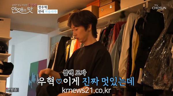 ▲ [사진제공 = TV CHOSUN ‘연애의 맛’ 캡처]시즌2 포문은 ‘아시아의 오빠’ 장우혁이 열었다. 밤 10시 불이 꺼진 영화관에서 드디어 아이돌 24년 차 비공개주의자의 공개 연애 서막이 올랐다. 장우혁은 리얼 콘셉트 프로그램 출연을 부담스러워했지만 진짜 사랑을 만날 수도 있다는 기대감에 선뜻 거절하지 못하고 고민을 거듭했다. 결국 출연을 택한 장우혁은 데뷔 24년 동안 보여주지 않던 개인 사생활을 확 오픈했다. 잠에서 깼지만 침대에 누운 채 이름 검색으로 하루를 시작하고, 관찰 예능에 익숙한 요즘 연예인들과 달리 집안에 설치된 카메라에 어쩔 줄 몰라 했다. 장우혁의 ‘연애의 맛’ 출연은 지인들에게도 화제였는지 스마트폰이 쉴 새 없이 울렸고, 절친한 동생 육중완은 “50을 넘기지 말자. 인간적인 느낌을 보여줘”라며 조언했고, 윤정수와 탁재훈은 놀리기 바빴다. 또 천만배우 박중훈까지 전화해 공개연애를 응원하며 진척되면 꼭 연락하라고 당부했다. 첫 만남을 앞두고 떨리는 마음을 애써 다독였던 장우혁은 한참동안 의상을 고민했지만, 새 옷을 꺼낼 때마다 블랙 의상을 선택했고, 끝내 신발까지 검은색을 스타일링한 올 블랙으로 스튜디오의 안쓰러움을 샀다. 장우혁은 마침내 약속 장소로 향했고, 첫 만남 장소로 택한 불 꺼진 극장 좌석에 앉은 순간, 긴 생머리, 세련된 매무새의 그녀가 나타나면서 장우혁의 심박수를 높였다.