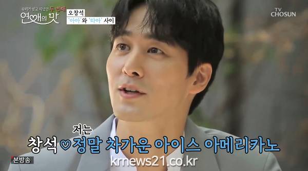 ▲ [사진제공 = TV CHOSUN ‘연애의 맛’ 캡처]‘조각미남’ 오창석은 강남 5대 얼짱 출신의 반전 일상을 선보였다. 늘어난 고무장갑을 낀 채 김빠진 콜라와 식초로 화장실 물때를 청소하고, 방금 내린 에스프레소로 아침을 시작할 것 같은 외모와 달리, 이틀 전 사온 패스트푸드 브랜드의 1500원짜리 먹다 남은 커피를 마시는, 스크루지급의 절약하는 모습으로 패널들의 걱정을 샀다. 하지만 이런 우려를 알 수 없던 오창석은 약속 장소로 정한 친구의 카페로 향했고, 상대가 마음에 들면 아이스 아메리카노, 안 들면 뜨거운 아메리카노를 주문하겠다고 제안했다. 떨리는 가슴을 부여잡고 기다리던 오창석은 레드벨벳 아이린을 닮은 유치원 교사 출신의 이채은을 만나자 마자 1초도 시선을 떼지 못했다. 오창석은 이채은을 위해 토스트와 와플 그리고 정말 차가운 아이스 아메리카노를 주문, 마음에 쏙 들었음을 적극적으로 표현했다. 그러나 지인이 짓궂게 뜨거운 아메리카노를 내오자 이를 악물고 “정신 나갔냐”고 타박하며 직진하는 모습을 보였다. 그리고 두 사람은 이야기를 나누던 중 스카이다이빙이 공통된 버킷리스트로 나오자 취향도, 성격도 비슷하다며 놀라했다. 오창석-이채은은 첫 만남부터 서로 통하는 모습으로 시즌2 커플 성공에 강한 기대감을 상승시켰다.