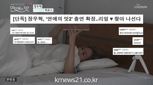 ▲ [사진제공 = TV CHOSUN ‘연애의 맛’ 캡처]한편 TV CHOSUN 연애 리얼리티 프로그램 ‘연애의 맛’ 시즌2는 매주 목요일 밤 11에 방송된다.