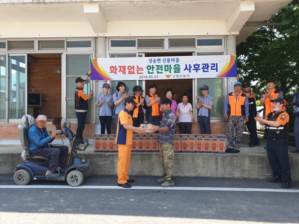 고창소방서(서장 박진선)는 지난 23일 고창군 성송면 신용마을에서 소방공무원과의용소방대원, 유관기관, 마을주민 등 약 50명이 참석한 가운데 해당 마을을 ‘화재없는 안전마을’사후관리 행사를 가졌다.