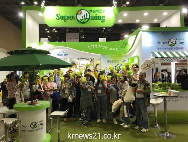 시는 킨텍스 제1전시장에 홍보부스를 설치하고, 관내 가공업체에서 생산한 흑임자 떡, 쑥개떡, 오메기떡, 쌀과자, 쌀빵, 전통주 천비향 및 호랑이 배꼽 등을 비롯해 평택시 농산물 통합브랜드 슈퍼 오닝인 방울토마토, 배, 오이 등의 전시 및 시식행사와 슈퍼 오닝 홍보미(米)을 증정하며 적극적으로 홍보했다.