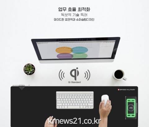 ▲ [사진=맥스컴코리아, 신개념 SWISS MILITARY 무선고속 충전 3in1 커넥터 내장 마우스장패드 출시]스위스밀리터리 스마트폰 관련 다양한 주변기기 제품들을 전문적으로 생산하고 유통해 온 ㈜맥스컴코리아는 자체 개발한 qi무선 고속 충전 3in1커넥터 무선 충전 마우스 패드를 출시한다고 28일 밝혔다.
