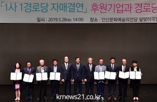 안산시(시장 윤화섭)는 노인 복지문제 해결과 나눔 문화 확산을 위해 추진 중인 ‘1사 1경로당 자매결연사업’에 참여하는 후원기업과 경로당 간 소통마당을 열었다고 29일 밝혔다.