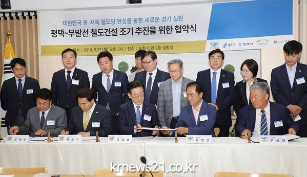 평택시(시장 정장선)가 지난 27일 경기도청에서 경기도지사, 평택시장, 용인시장, 이천시장, 안성시장이 참석한 가운데 평택~부발선 철도건설사업 조기 추진을 위한 협약을 체결했다고 밝혔다.