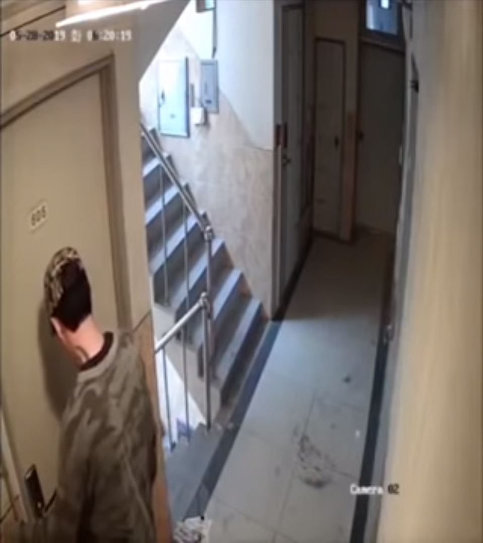 1분20초분량의 이 영상에서 A씨는 귀가하는 여성을 따라가다 여성이 현관문을 닫을때 손을 내밀어 현관문을 잡으려고 시도했다.