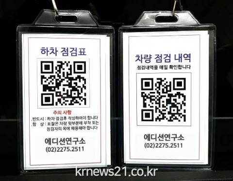 ▲ [사진= 점검표와 점검내역 태그 견본 이미지. 목에 걸거나 차량에 부착하여 사용]인터넷 IT서비스 전문 기업 에디션 연구소㈜(대표 배종대)에서 새로운 아이 하차 점검 시스템을 개발했다고 밝혔다.