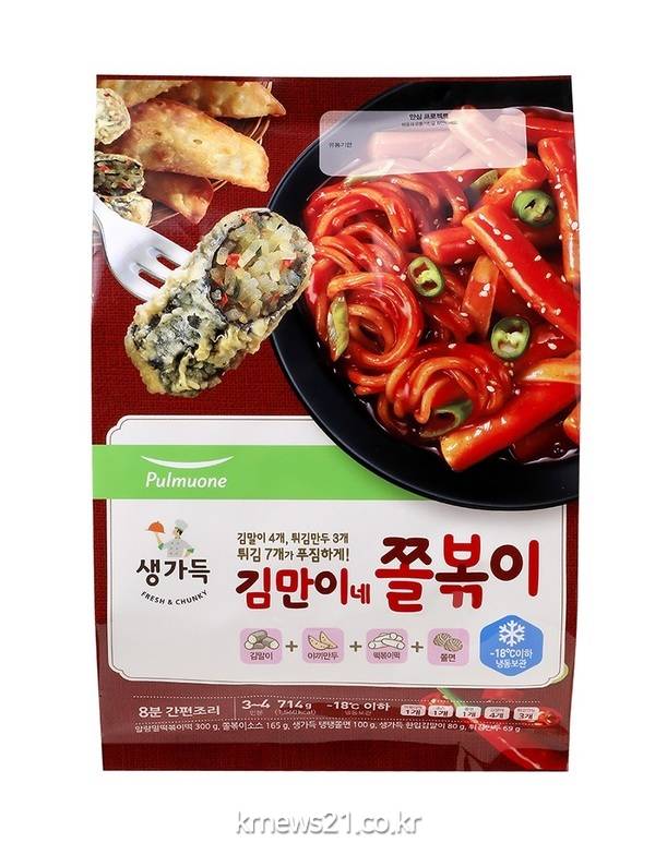 ▲ [사진=생가득 김만이네 쫄볶이 매운맛]풀무원식품 FRM(Fresh Ready Meal) 심웅섭 PM(Product Manager)은 “한끼 식사로 손색이 없는 다양한 구성물과 푸짐한 양으로 간식 개념의 기존 간편식 떡볶이와 차별화했다”며, “전문점식 세트구성과 맛을 집에서도 즐길 수 있다는 점에서 풀무원이 내세우고 있는 ‘외식의 내식화 전략’을 충실히 반영한 제품이다”고 말했다.