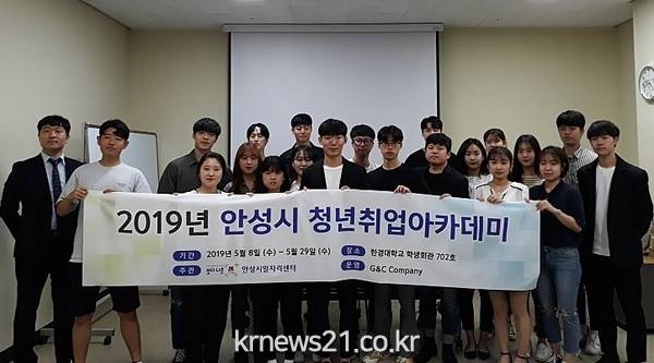 안성시는 지난 5월 관내 대학생들을 대상으로 진행한 ‘2019 안성시 청년 취업아카데미’를 성공적으로 종료했다.이번 프로그램은 한경대학교, 두원공과대학교 졸업예정자를 대상으로 총4회기 16시간의 일정으로 진행되어 한경대학교 20명, 두원공과대학교 14명 등 총 34명 학생들이 참여했다.특히, 구직스킬 향상 및 취업역량 강화를 위해, 기업분석 기초와 이해, 직무역량기반의 입사지원서 작성법, 실전 모의면접 등 전공이나 지원 분야를 고려한 맞춤형 취업지원프로그램으로 진행했다.김진관 창조경제과장은 “이번 프로그램이 청년층 일자리해결에 필요한 밑거름이 되었기를 바란다”고 전했다.한편, 안성일자리센터는 청년층, 중장년층, 경력단절여성, 다문화여성 취업프로그램, 대규모 및 소규모 채용박람회, 상설·동행면접, 일자리 발굴단, 전통시장이동일자리상담, 목요야간일자리상담소 등을 운영하고 있다.취업상담 및 취업지원관련 프로그램은 안성일자리센터(686-1760) 및 안성일자리센터 블로그 (https://blog.naver.com/anseongjob) 통하여 안내 받을 수 있다.