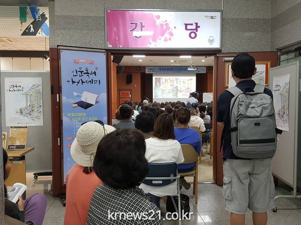 이봉화 북수원도서관 주무관은 “강의가 열리는 날이면 강당 책상을 밖으로 빼고, 열람실·사무실 의자까지 가져오는데도 여전히 자리가 부족하다.”면서, “120명이 수강 정원이지만 공부를 하러 오신 시민들을 돌려보낼 수 없어 문밖에서라도 강의를 들으실 수 있게 자리를 마련해 놓는다”고 말했다.