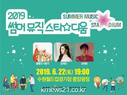 ▲ [사진=2019 썸머 뮤직 스타디움 포스터]‘2019 썸머 뮤직 스타☆디움’이 6월 22일(토) 19시 수원월드컵경기장 중앙광장에서 개최된다.
