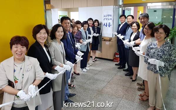 시흥시(시장 임병택)가 홀로 사는 어르신의 건강관리와 일상생활 서비스를 통합 지원하기 위한 독거노인 건강 생활 지원센터 현판식을 12일 열고 개소 준비에 박차를 가하고 있다.