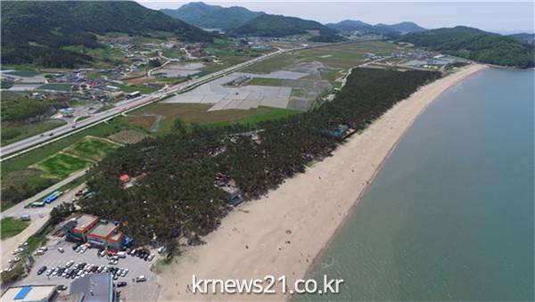 바람을 막아주는 소나무 숲이 자연스럽게 야영지에 늘어서 있고, 야영을 즐기면서 해변 자연경관을 감상할 수 있도록 해변산책로와 낙조 전망대가 설치됐다.